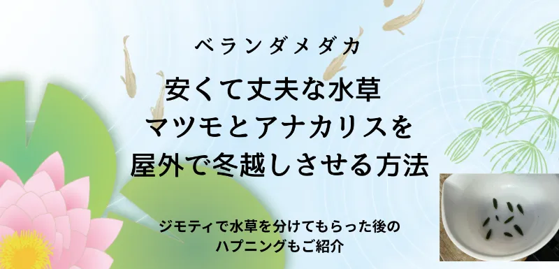 メダカを育て始めたらやっぱり水草を入れてあげたくなりますね。安くて丈夫で誰でも簡単に育てられる、メダカ初心者におすすめの水草、アナカリスとマツモをベランダで冬越しさせました。