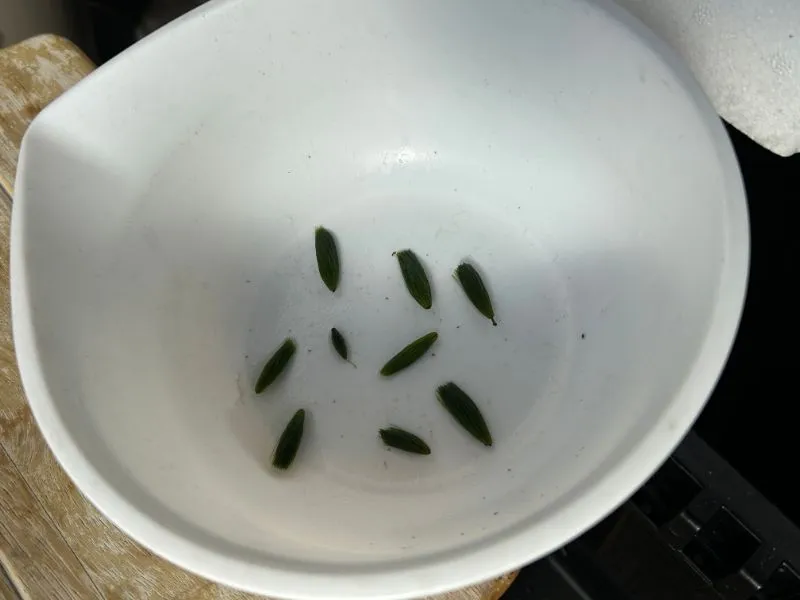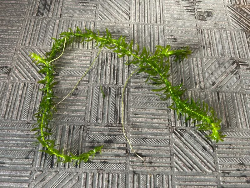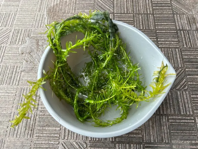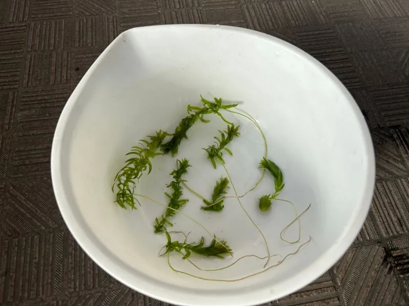 冬越しするのは新芽だけ。アナカリス全体を水槽に入れても、だんだん変色して葉が落ちていきます。変色した部分は結局枯れるだけなので、これだけ短くしてもOKです。
