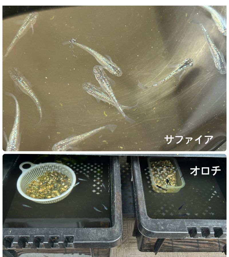 ●サファイアを頂く時に近親相姦?予防のために以前もらった極龍や紅白ラメも少し分けてもらったので、混ぜながら親選びをしました。でもメダカの場合親魚が多いのでそんな心配しなくてもいいようです。