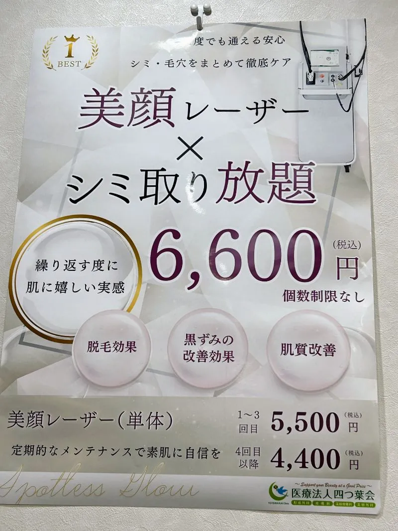 - 京都駅直結ヨドバシ6F よつば会クリニックは良心的な値段の美容クリニック